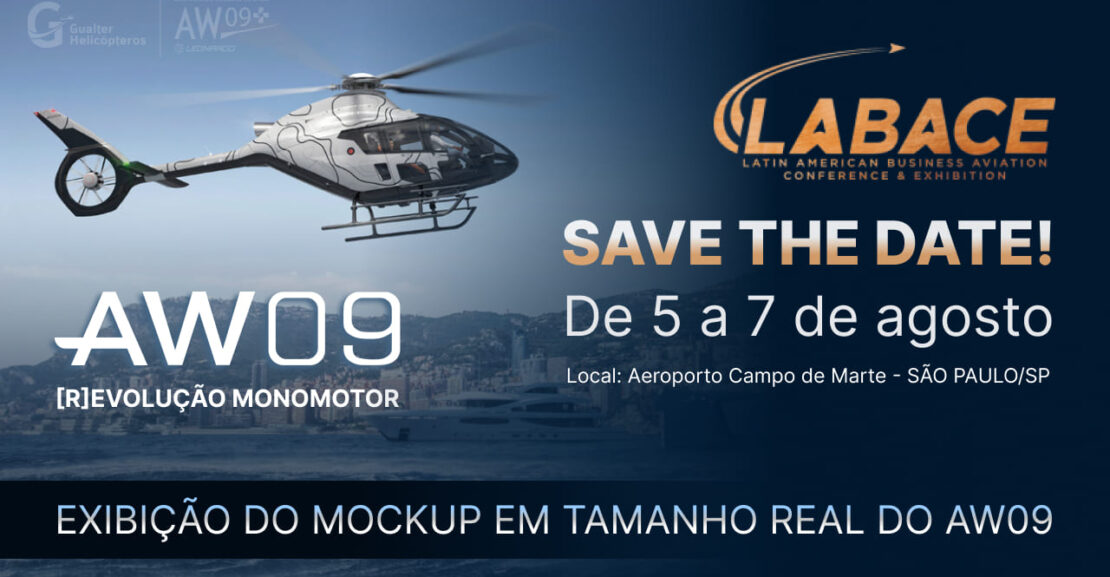 Esta é uma oportunidade única de ter uma experiência tangível com o futuro da aviação: teremos a exibição do mockup em tamanho real do AW09, o novo monomotor da Leonardo, distribuído com exclusividade no Brasil pela Gualter Helicópteros.